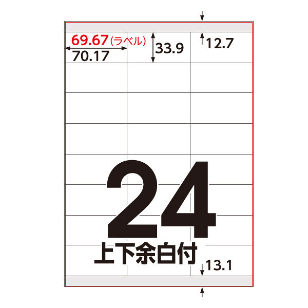 私が使っている宛名ラベルはA4サイズで8行×3列の24面です。