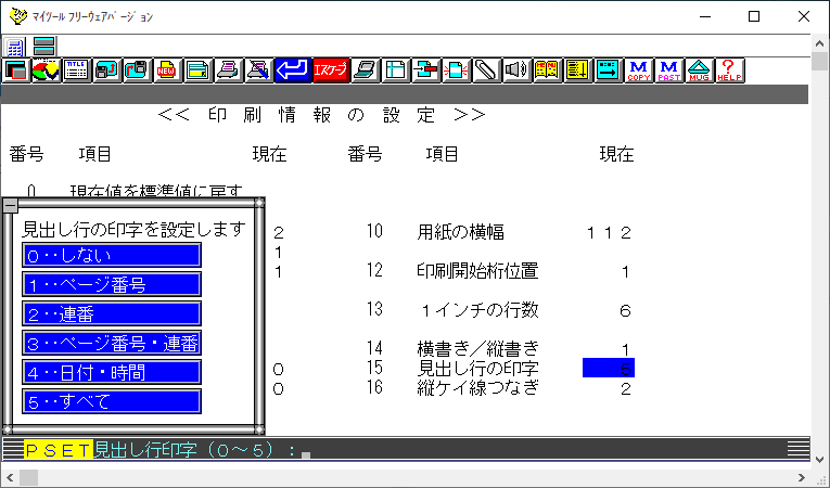 **PSETコマンドの15番(見出し行の印刷)**を「すべて」に設定します。