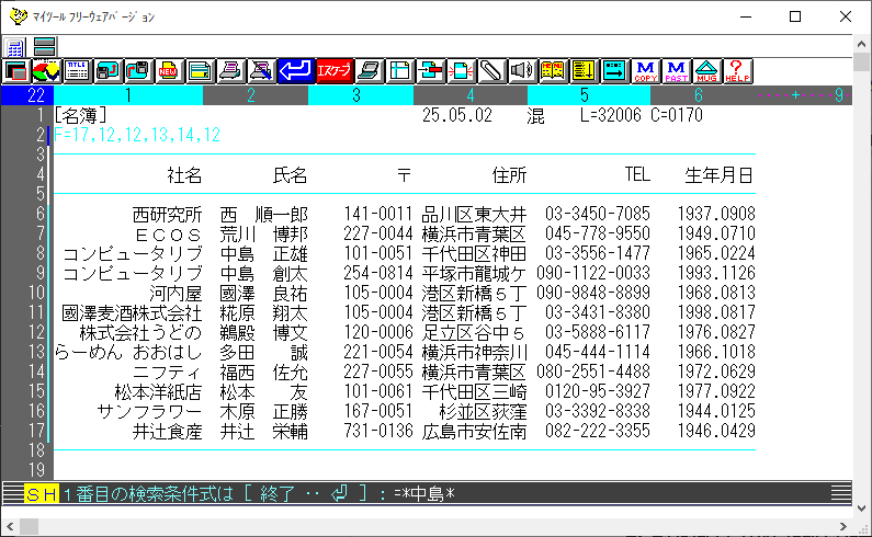 検索条件を指定するとき「=」を使うと、ぺージ内のどこの列に「中島」があっても検索できるので便利です。