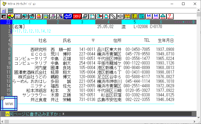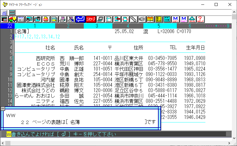 名簿だと同じ会社の人を入力するときに上と同じは便利です。