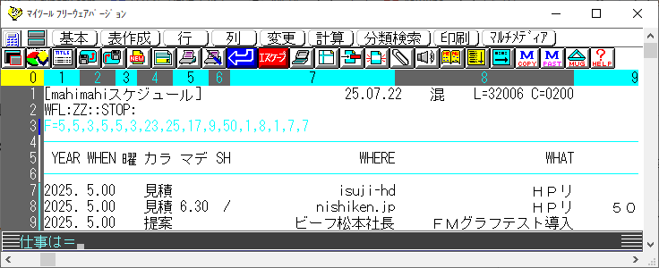 マイツール20週。ここまでいかがでしょうか。ここまで名簿やスケジュールを使ってマイツールの基本操作を身につけていただくことが、わたしの狙いです。引き続き、もう少しお付き合いいただけるとうれしいです。