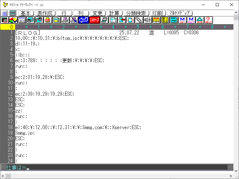 「仕事は=」の状態で RLOG ドン