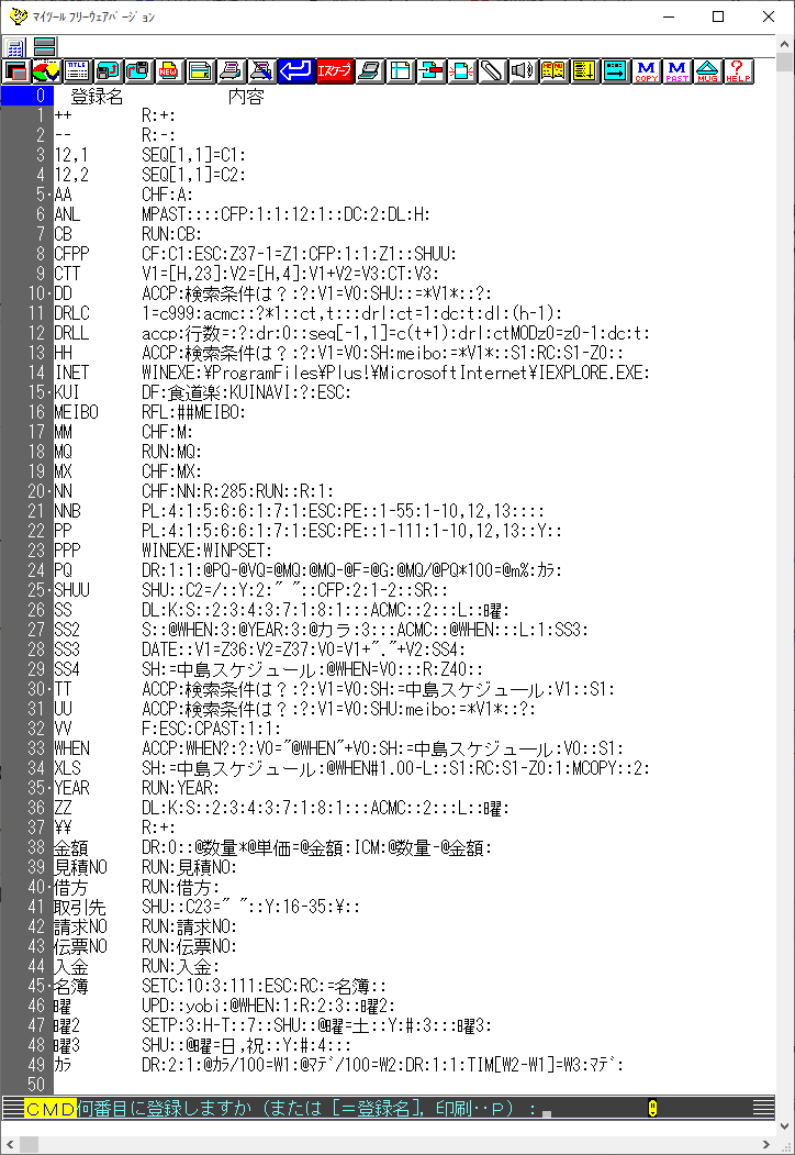 CMDのコマンド名は日本語でも登録できます。