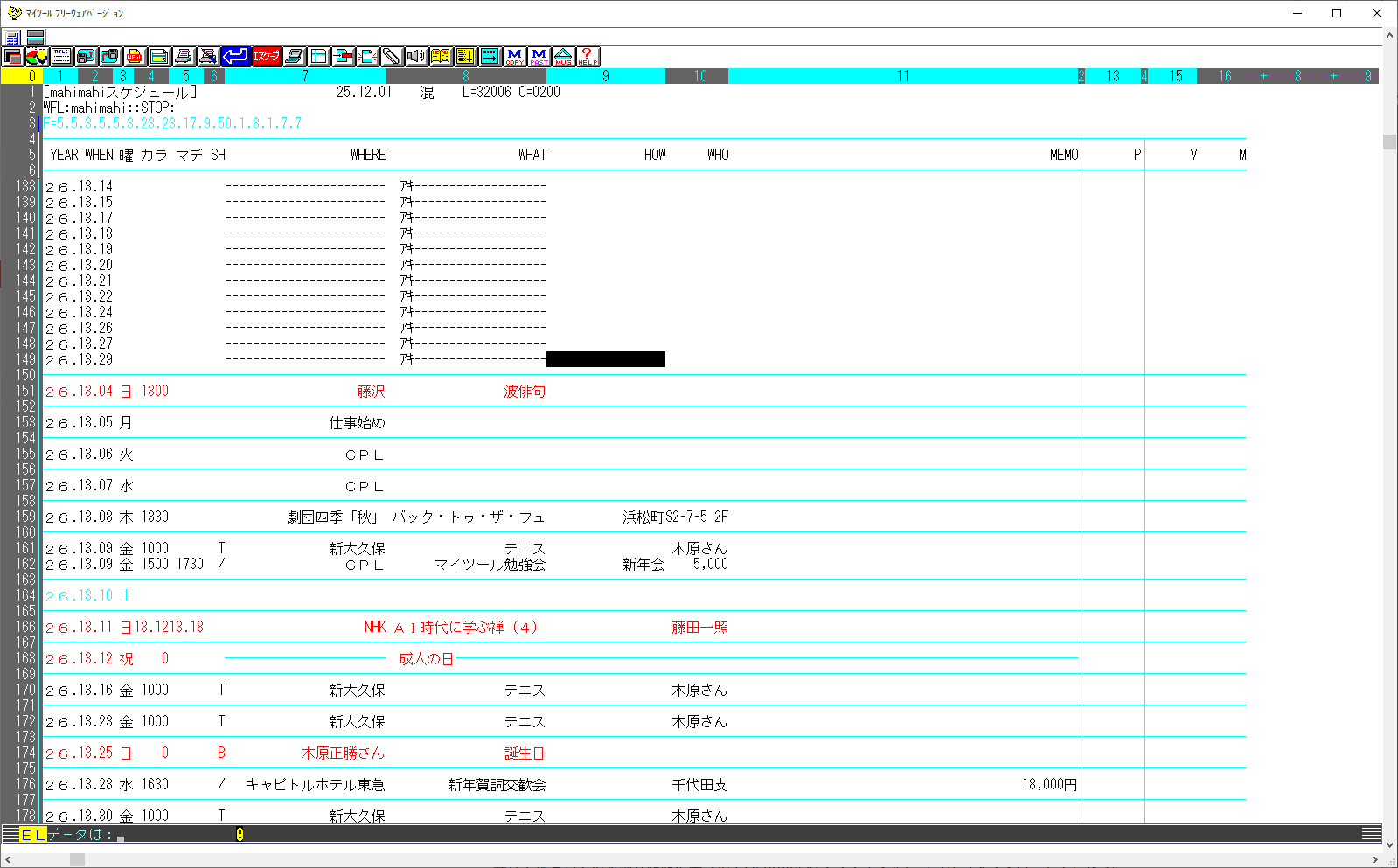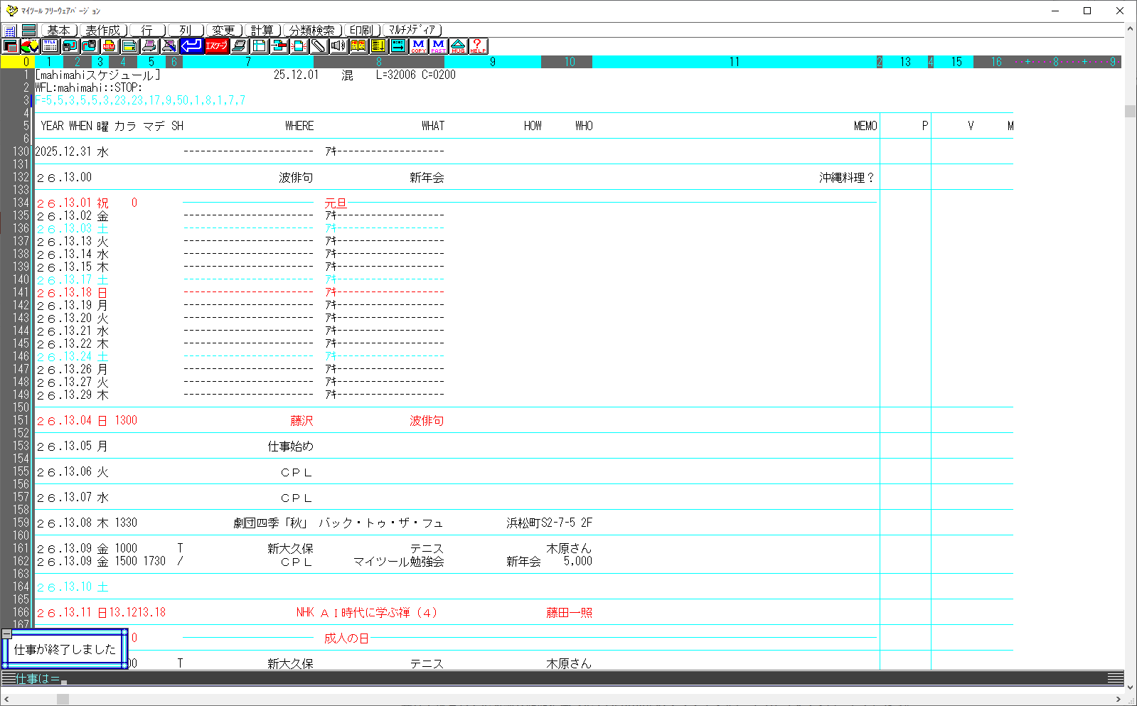 年末、マイツールのスケジュール管理をメンテナンスします。