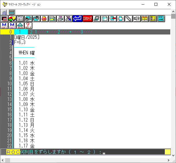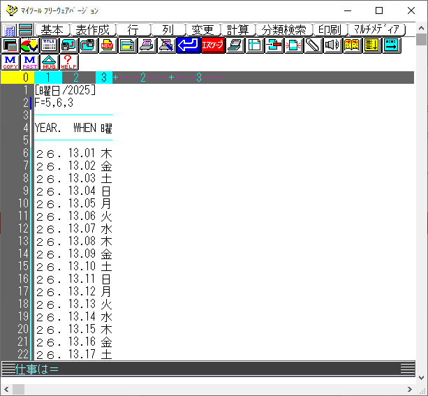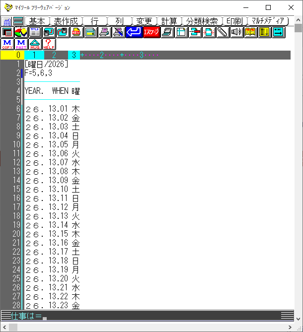 ・曜日UPD用のカレンダーを新しい年にする